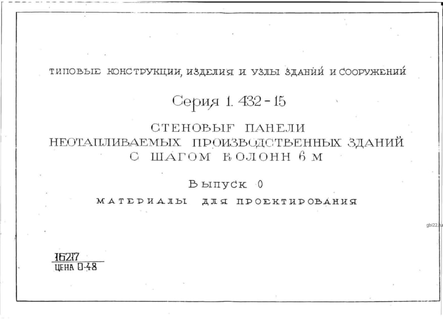 | Название стандарта | Стеновые панели неотапливаемых производственных зданий с шагом колонн 6 м. |