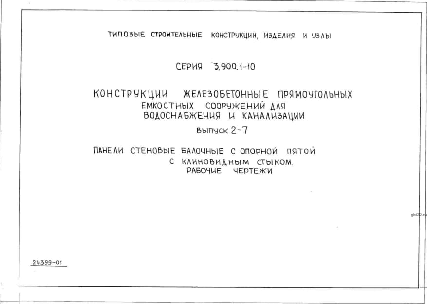 | Название стандарта | Конструкции железобетонные прямоугольные емкостных сооружений для водоснабжения и канализации. |