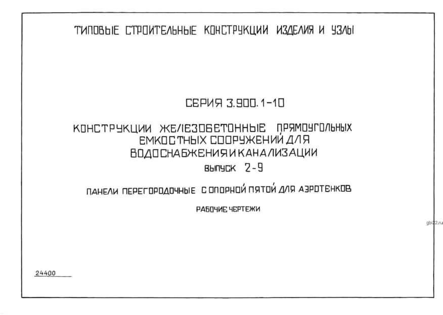 | Название стандарта | Конструкции железобетонные прямоугольные емкостных сооружений для водоснабжения и канализации. |