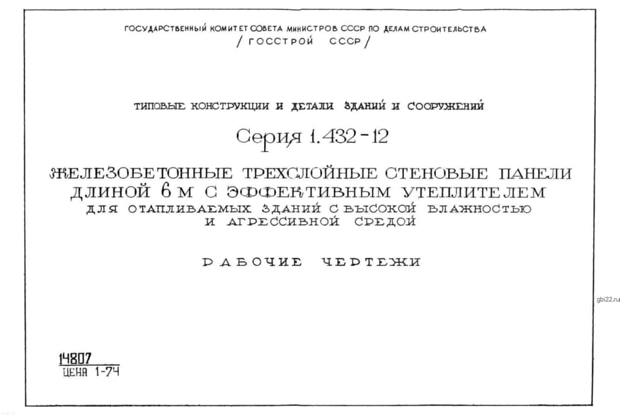 | Название стандарта | Железобетонные трехслойные стеновые панели длиной 6 м с эффективным утеплителем для отапливаемых зданий с высокой влажностью и агрессивной средой. Рабочие чертежи. |