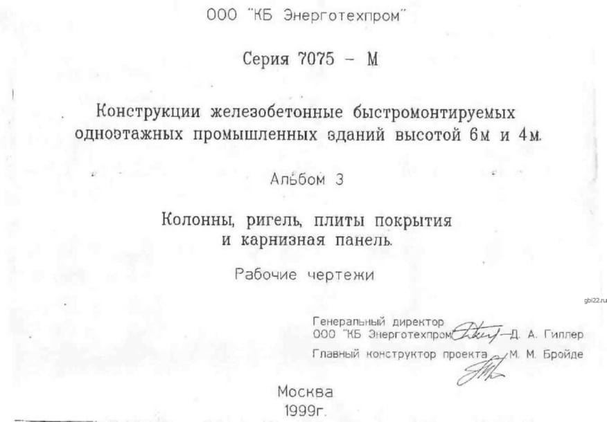 | Название стандарта | Конструкции железобетонные быстромонтируемых одноэтажных промышленных зданий высотой 6 м и 4 м. |