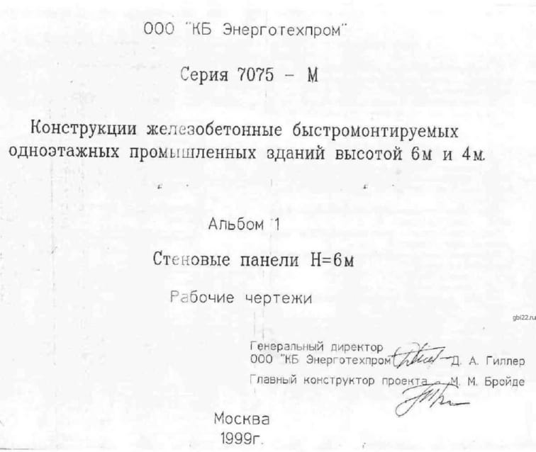 | Название стандарта | Конструкции железобетонные быстромонтируемых одноэтажных промышленных зданий высотой 6 м и 4 м. |