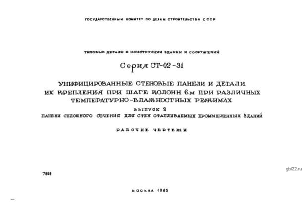 | Название стандарта | Унифицированные стеновые панели и детали их крепления при шаге колонн 6 м при различных температурно-влажностных режимах. |
