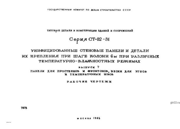 | Название стандарта | Унифицированные стеновые панели и детали их крепления при шаге колонн 6 м при различных температурно-влажностных режимах. |