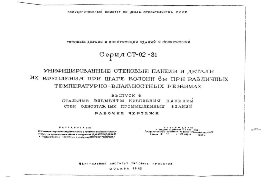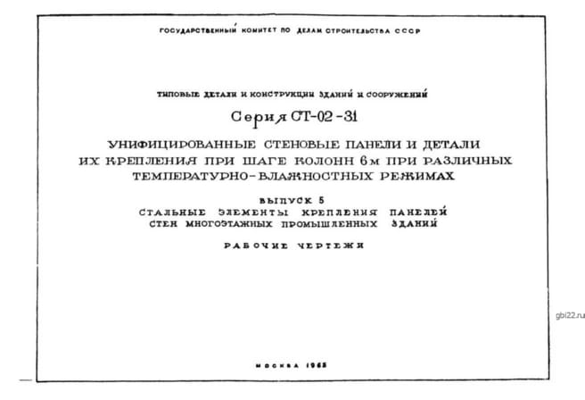 | Название стандарта | Унифицированные стеновые панели и детали их крепления при шаге колонн 6 м при различных температурно-влажностных режимах. |