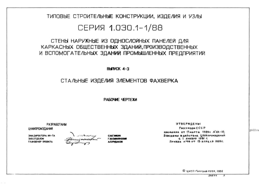 | Название стандарта | Стены наружные из однослойных панелей для каркасных общественных зданий, производственных и вспомогательных зданий промышленных предприятий. |