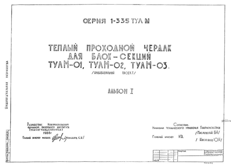 | Название стандарта | Теплый проходной чердак для блок-секций ТулМ-01, ТулМ-02, ТулМ-03 (индивидуальный проект). |