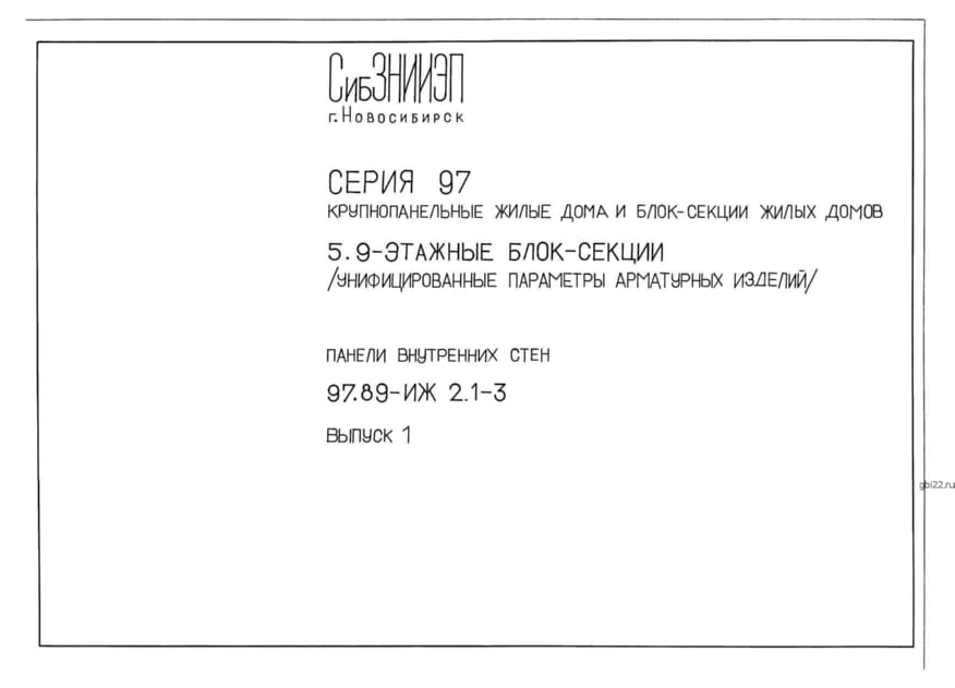 | Название стандарта | Крупнопанельные жилые дома и блок-секции жилых домов. 5, 9-этажные блок секции (унифицированные параметры арматурных изделий). |