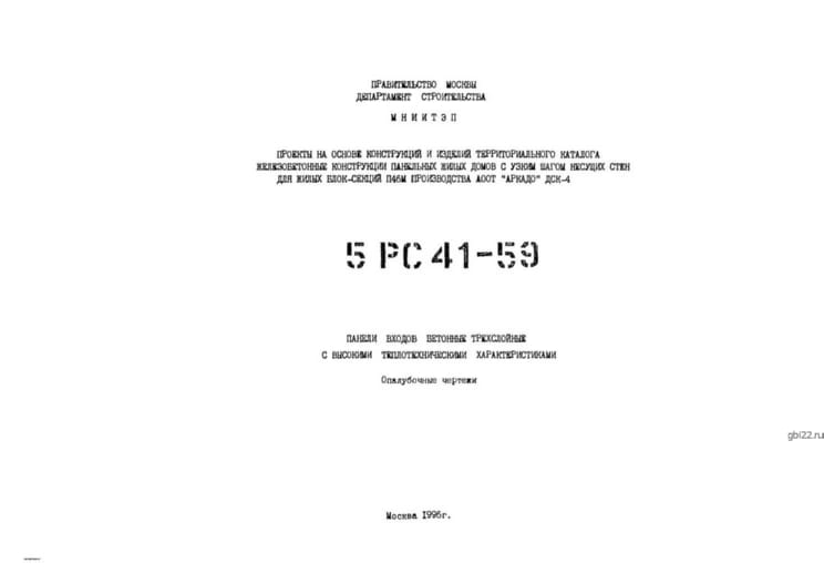 | Название стандарта | Проекты на основе конструкций и изделий территориального каталога. Железобетонные конструкции панельных жилых домов с узким шагом несущих стен для жилых блок-секций П46М производства АООТ " АРКАДО" ДСК-4. Панели входов бетонные трехслойные с высокими тепл |