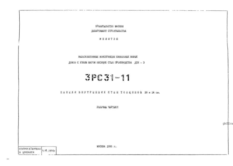 | Название стандарта | Железобетонные конструкции панельных жилых домов с узким шагом несущих стен производства ДСК-3. Панели внутренних стен толщиной 18 и 14 см. |