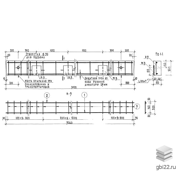 Перемычки БУ 31-1 – это железобетонные конструкции высокой прочности, обладающие продолговатой прямоугольной формой и сечением. Благодаря надежному армированию, они способны выдерживать нагрузку до 1500 кг/м, включая собственный вес.