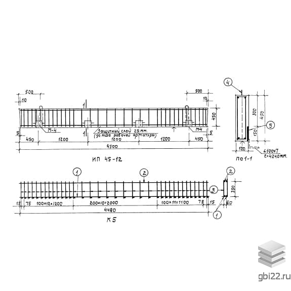 Перемычки ИП 45-12 изготавливаются с учетом современных технологий и стандартов. Армирование выполняется с использованием сварных каркасов и арматурных стержней из стали классов А-111 и А-1. Все элементы защищены антикоррозийным покрытием, а бетонирование осуществляется тяжелой смесью марки М200.