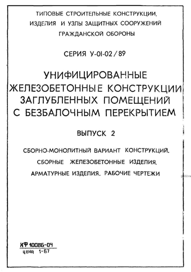 | Название стандарта | Унифицированные железобетонные конструкции заглубленных помещений с безбалочным перекрытием. |