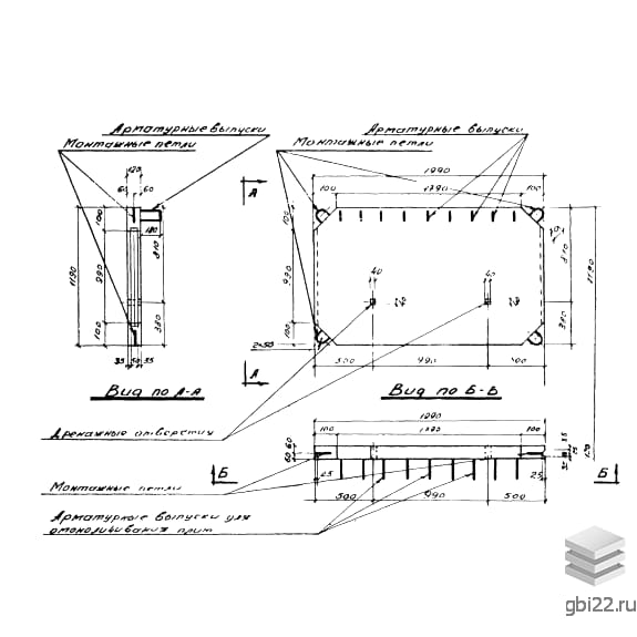 Изделие имеет прямоугольную форму со скошенными углами, образующими восьмигранный контур. Верхняя часть оснащена арматурными выпусками, а по углам расположены 4 монтажные петли из стали класса АI (?10 мм) для удобства транспортировки и фиксации.