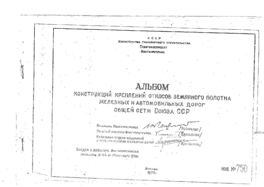 | Название стандарта | Альбом конструкций креплений откосов земляного полотна железных и автомобильных дорог общей сети. |