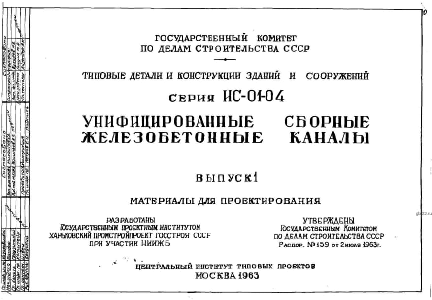 | Название стандарта | Унифицированные сборные железобетонные каналы. |