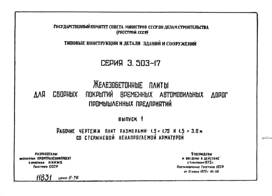| Название стандарта | Железобетонные плиты для сборных покрытий временных автомобильных дорог промышленных предприятий. |