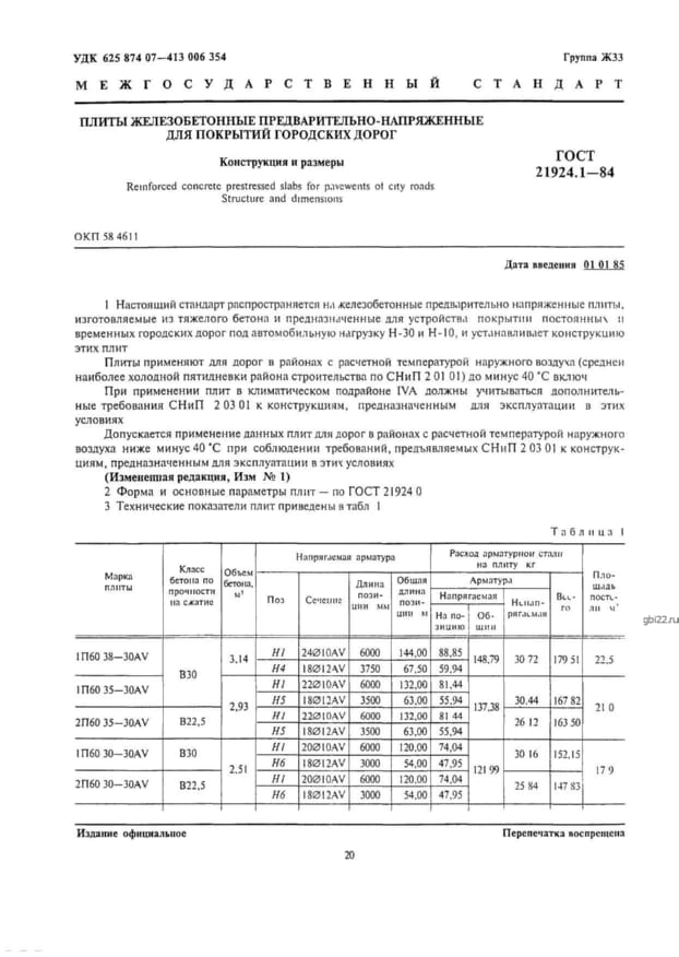 | Название стандарта | Плиты железобетонные для покрытий городских дорог. Технические условия. |