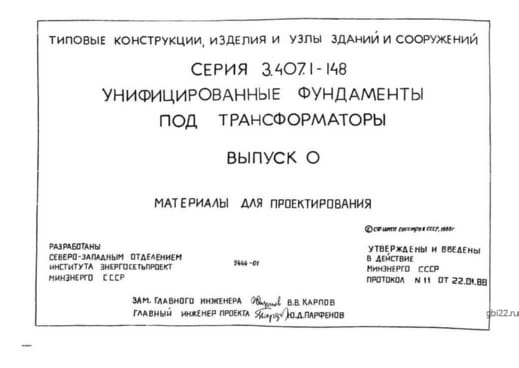 | Название стандарта | Унифицированные фундаменты под трансформаторы. |