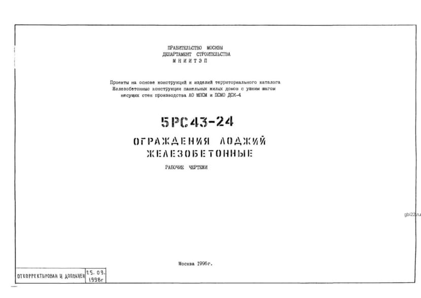 | Название стандарта | Проекты на основе конструкций и изделий территориального каталога. Железобетонные конструкции панельных жилых домов с узким шагом несущих стен производства АО МПСМ и ПСМО ДСК-4. Ограждения лоджий железобетонные. |