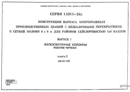 | Название стандарта | Конструкции каркаса многоэтажных производственных зданий с безбалочными перекрытиями с сеткой колонн 6х6 м для районов сейсмичностью 7 и 8 баллов. |