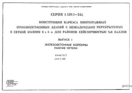 | Название стандарта | Конструкции каркаса многоэтажных производственных зданий с безбалочными перекрытиями с сеткой колонн 6х6 м для районов сейсмичностью 7 и 8 баллов. |