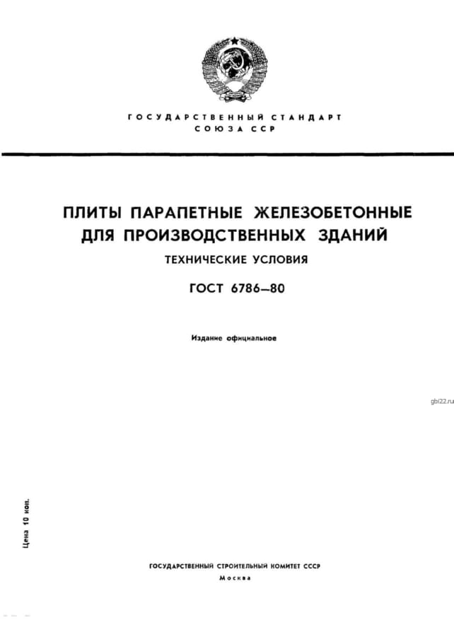 | Название стандарта | Плиты парапетные железобетонные для производственных зданий. Технические условия. |