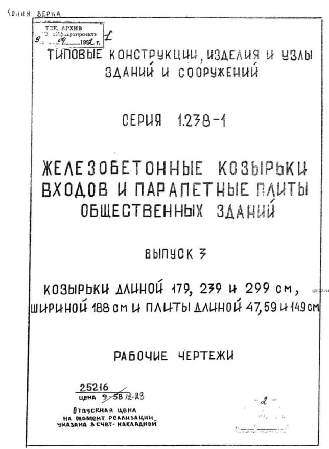 | Название стандарта | Железобетонные козырьки входов и парапетные плиты общественных зданий. |