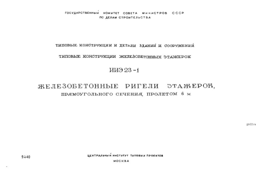 | Название стандарта | Железобетонные ригели пролетом 6 м с полками для опирания плит. |