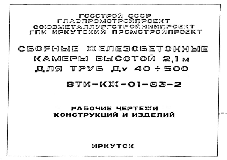 | Название стандарта | Сборные железобетонные камеры высотой 2,1 м для труб Ду 40 - 500 мм. |