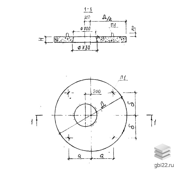 Железобетонные плиты ПВГ 20 имеют круглую форму с прямоугольным сечением и сквозным отверстием диаметром 700 мм в центре. Основные размеры: