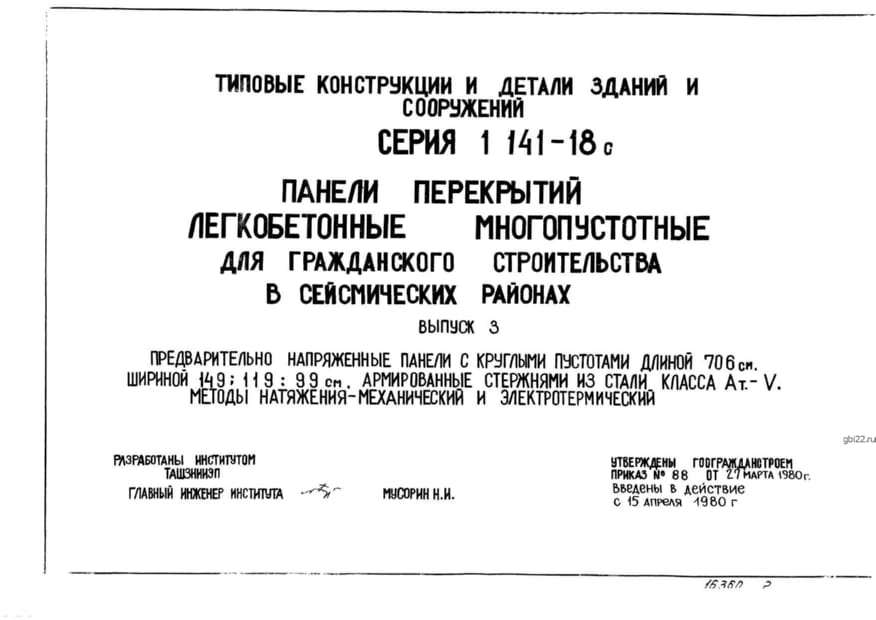 | Название стандарта | Панели перекрытий легкобетонные многопустотные для гражданского строительства в сейсмических районах. |