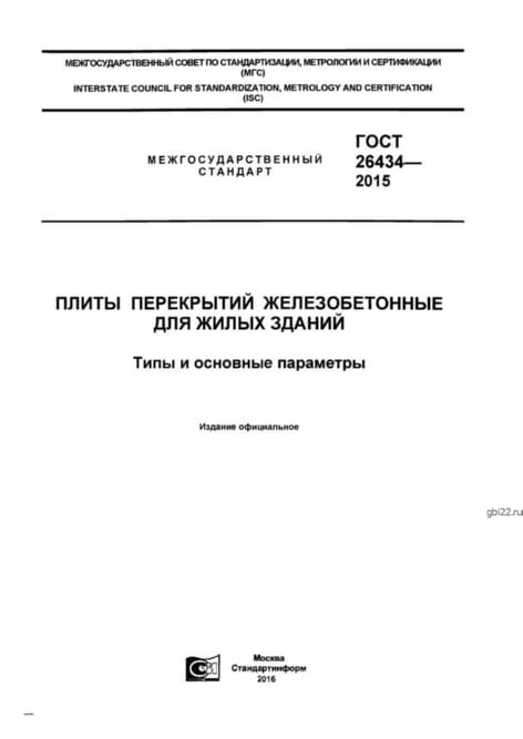 | Название стандарта | Плиты перекрытий железобетонные для жилых зданий. Типы и основные параметры. |