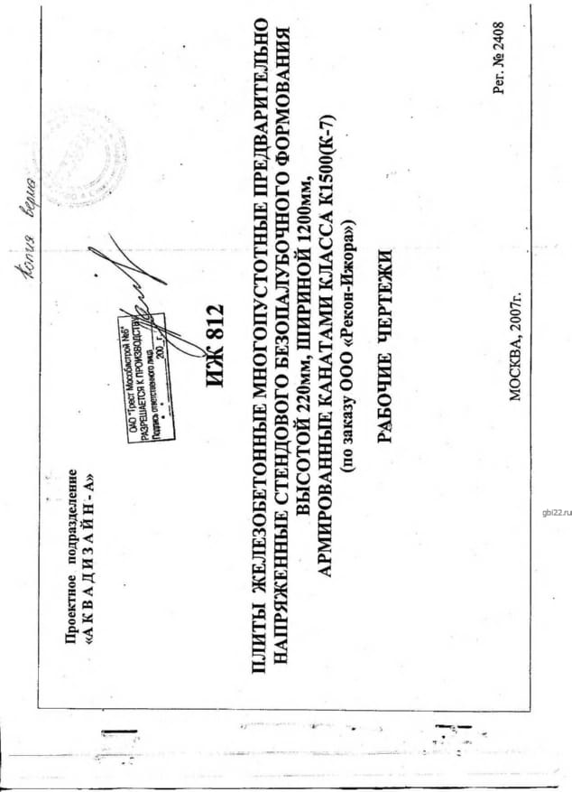 | Название стандарта | Плиты железобетонные многопустотные предварительно напряженные стендового безопалубочного формования высотой 220мм, шириной 1200мм, армированные канатами класса К1500(К7). |