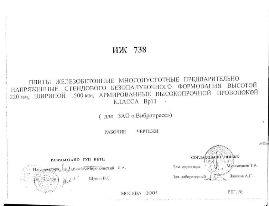 | Название стандарта | Плиты железобетонные многопустотные предварительно напряженные стендового безопалубочного формования высотой 220 мм, шириной 1500 мм, армированные высокопрочной проволокой класса ВрII. |