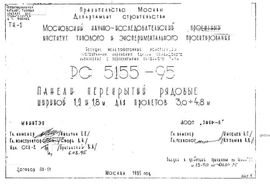 | Название стандарта | Панели перекрытий рядовые шириной 1,2 и 1,8 м для пролетов 3,0-4,8м. |