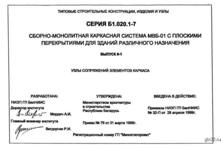 | Название стандарта | Сборно-монолитная каркасная система МВБ-01 с плоскими перекрытиями для зданий различного назначения. |