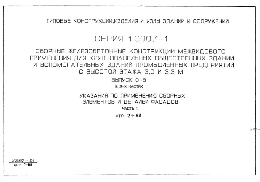 | Название стандарта | Сборные железобетонные конструкции межвидового применения для крупнопанельных общественных зданий и вспомогательных зданий промышленных предприятий с высотой этажей 3,0 и 3,3 м. |