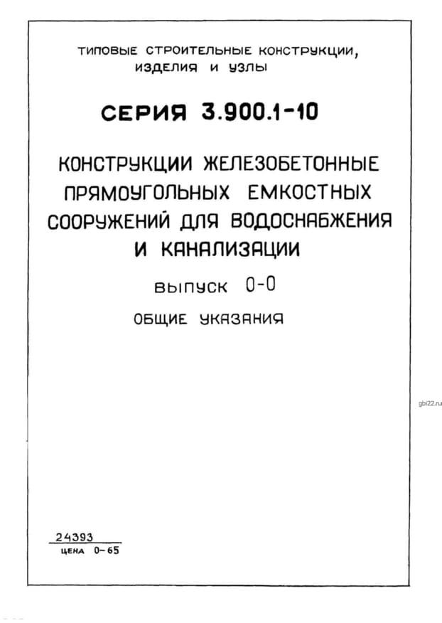 | Название стандарта | Конструкции железобетонные прямоугольные емкостных сооружений для водоснабжения и канализации. |