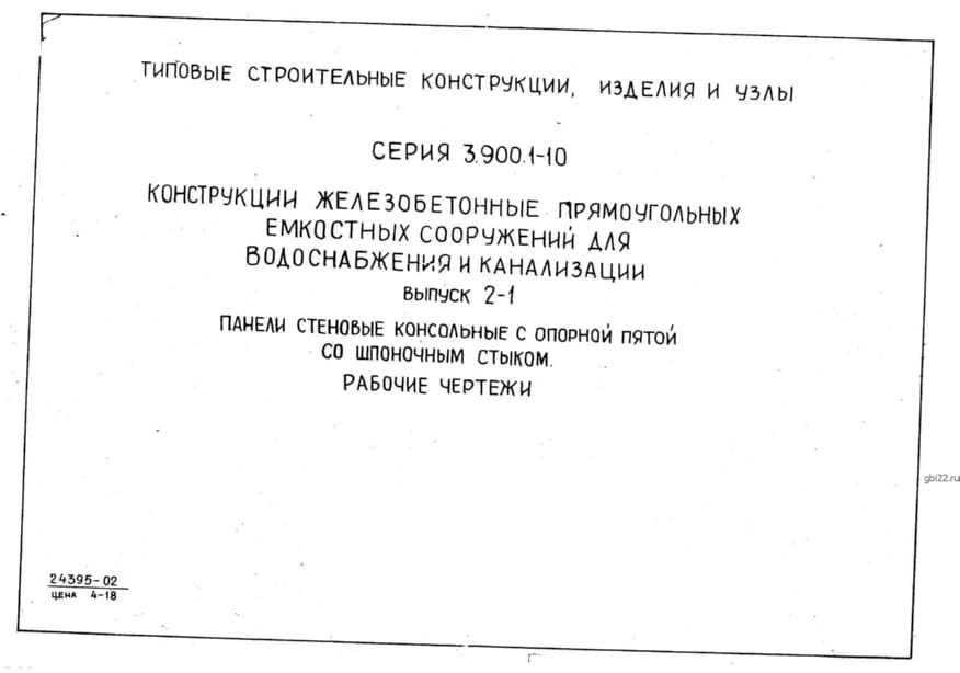 | Название стандарта | Конструкции железобетонные прямоугольные емкостных сооружений для водоснабжения и канализации. |