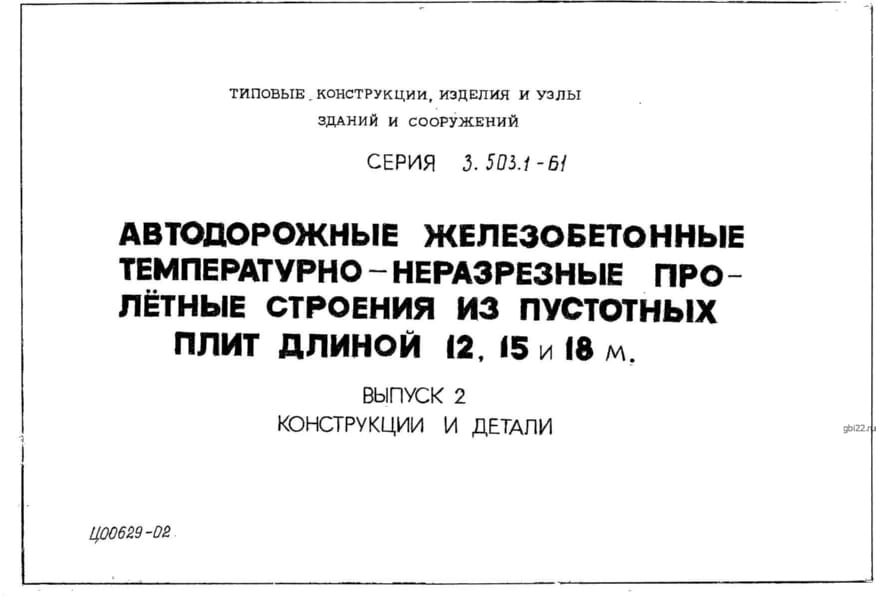 | Название стандарта | Автодорожные железобетонные температурно-неразрезные пролетные строения из пустотных плит длиной 12, 15 и 18 м. |