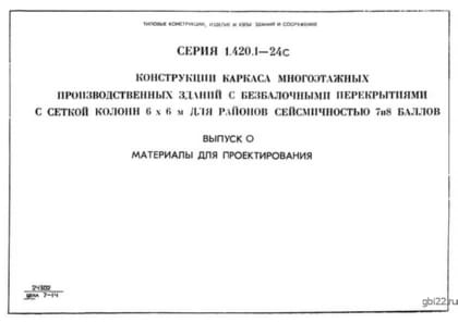 | Название стандарта | Конструкции каркаса многоэтажных производственных зданий с безбалочными перекрытиями с сеткой колонн 6х6 м для районов сейсмичностью 7 и 8 баллов. |