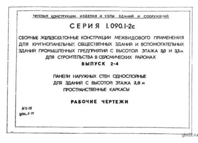 | Название стандарта | Сборные железобетонные конструкции межвидового применения для крупнопанельных общественных зданий и вспомогательных зданий промышленных предприятий с высотой этажа 3,0 и 3,3 м для строительства в сейсмических районах. |