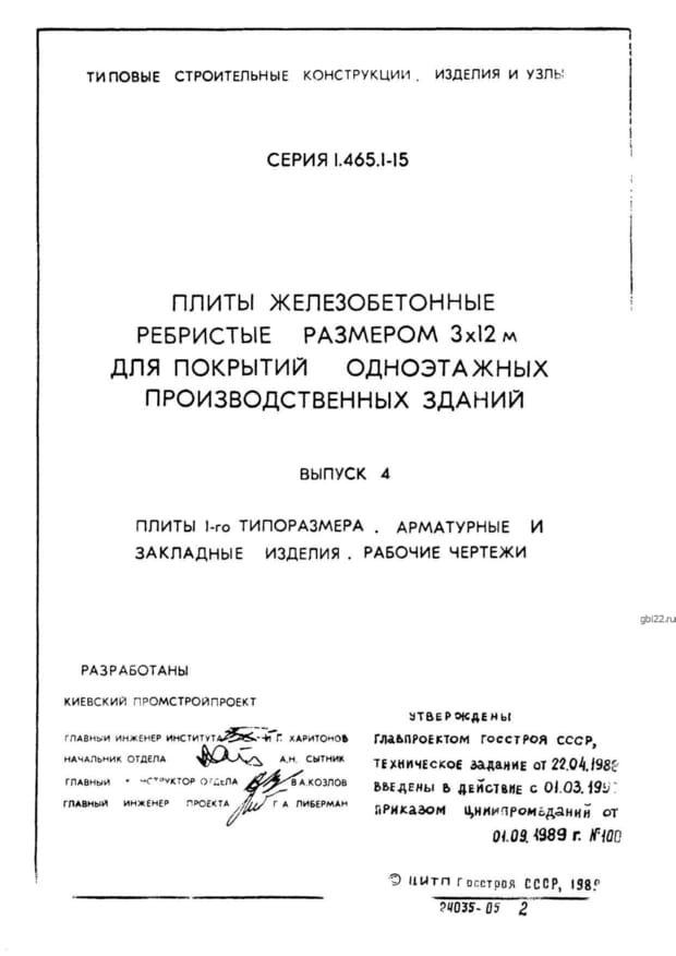 | Название стандарта | Плиты железобетонные ребристые размером 3х12 м для покрытий одноэтажных производственных зданий. |