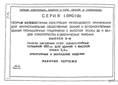 | Название стандарта | Сборные железобетонные конструкции межвидового применения для крупнопанельных общественных зданий и вспомогательных зданий промышленных предприятий с высотой этажа 3,0 и 3,3 м для строительства в сейсмических районах. |