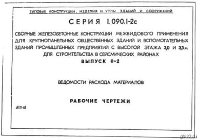 | Название стандарта | Сборные железобетонные конструкции межвидового применения для крупнопанельных общественных зданий и вспомогательных зданий промышленных предприятий с высотой этажа 3,0 и 3,3 м для строительства в сейсмических районах. |