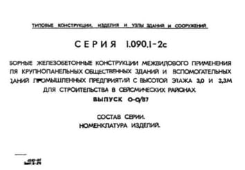 | Название стандарта | Сборные железобетонные конструкции межвидового применения для крупнопанельных общественных зданий и вспомогательных зданий промышленных предприятий с высотой этажа 3,0 и 3,3 м для строительства в сейсмических районах. |