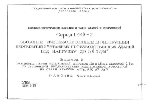 | Название стандарта | Сборные железобетонные конструкции перекрытий 2-х этажных производственных зданий под нагрузку до 5,0 тс/кв. м. |