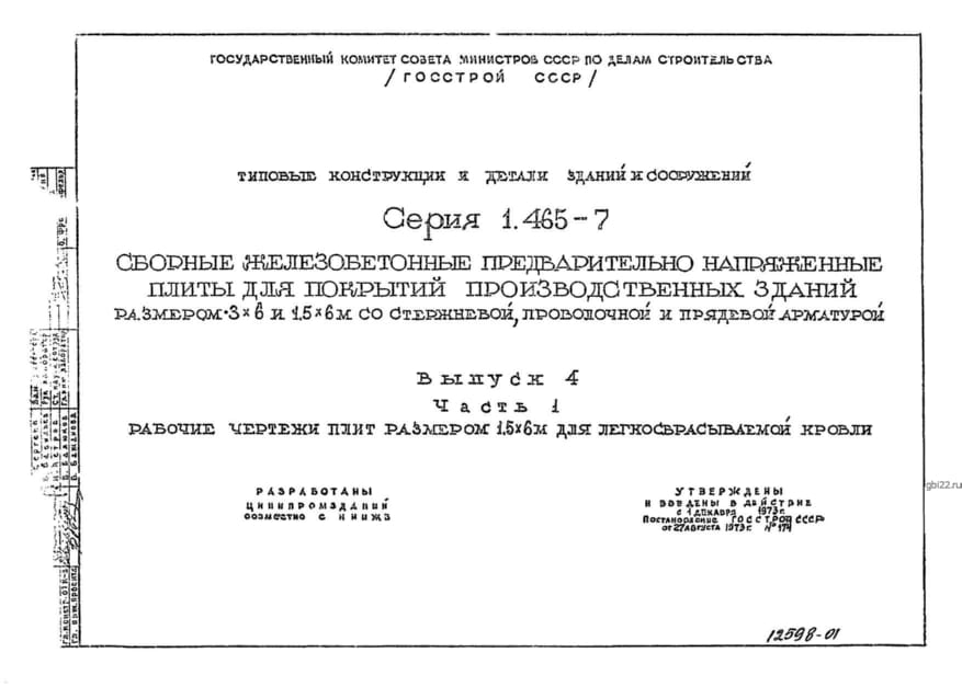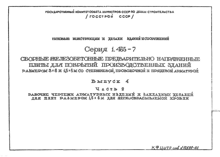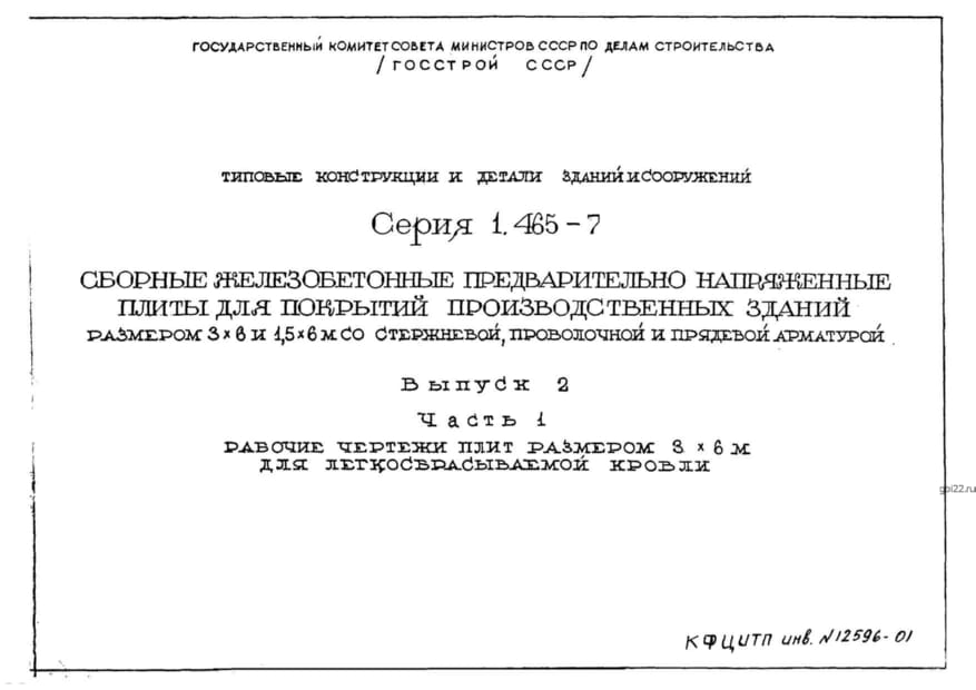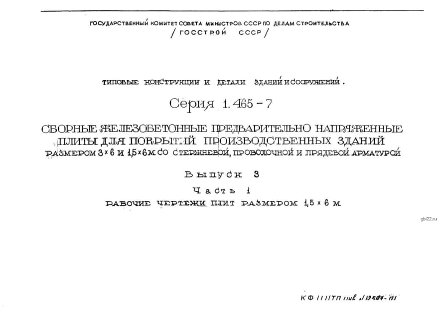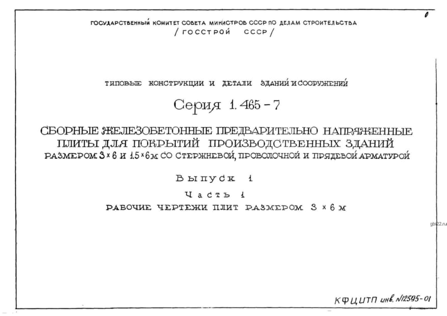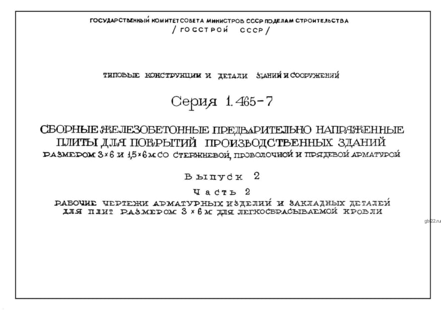 | Название стандарта | Сборные железобетонные предварительно напряженные плиты для покрытий производственных зданий размером 3х6 и 1,5х6 м со стержневой, проволочной и прядевой арматурой. |