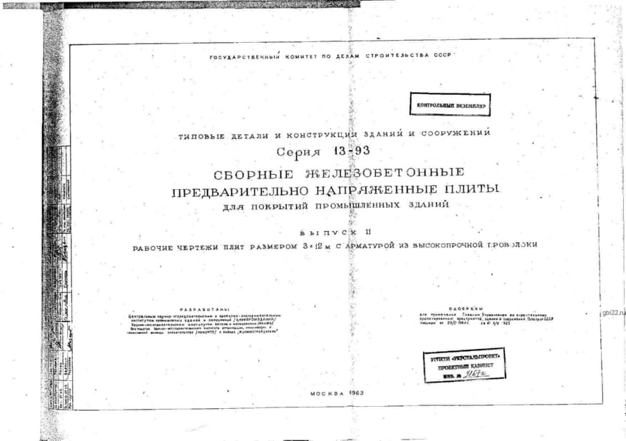 | Название стандарта | Сборные железобетонные предварительно напряженые плиты для покрытия промышленных зданий. |
